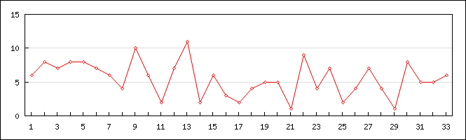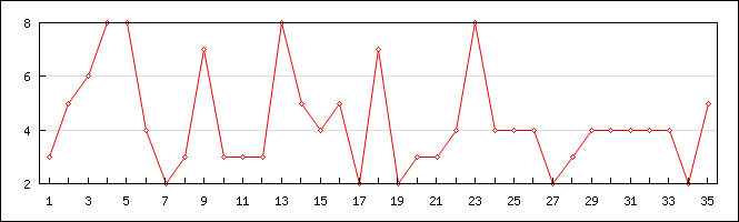 | 23 | 2.62 | 12 | 2 | 1 | 0.38 |